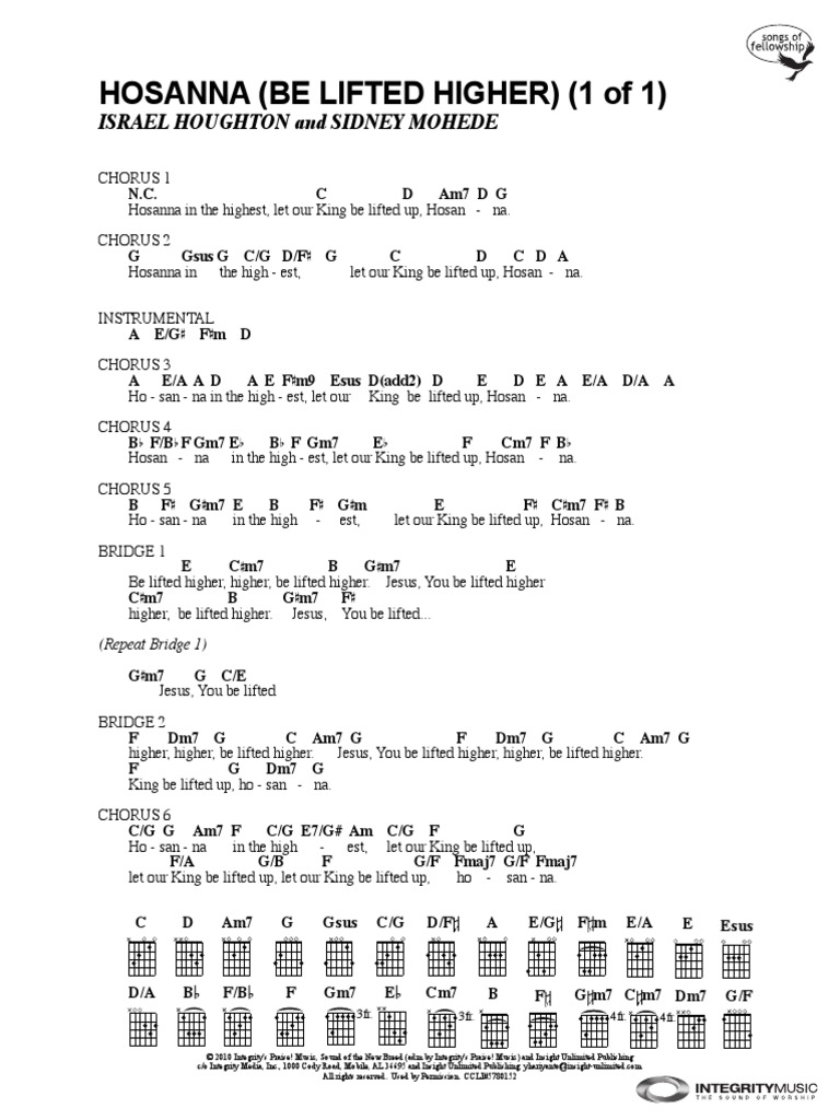 Hosanna Be Lifted Higher Chord Chart
