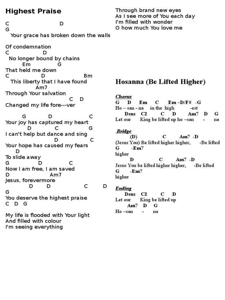 Highest Praise Hosanna Be Lifted Higher Chords En5kmd1pgkno
